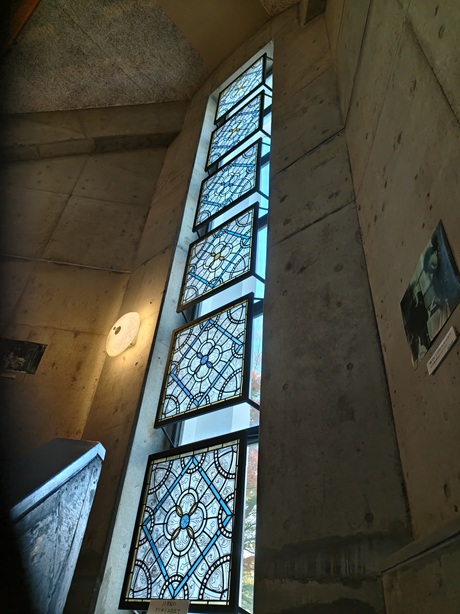 大磯駅のすぐ近くにある澤田美喜記念館は特徴のある六角形であり、建物内にあるステンドグラスも