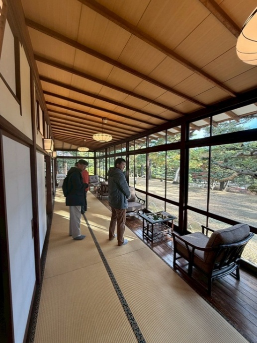 明治記念大磯庭園では、旧大隈重信別邸と陸奥宗光別邸を見学しました。障子や窓格子がとても素敵で、